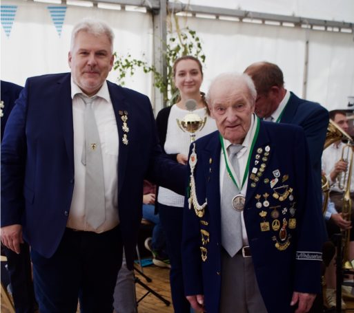 - Erster Ritter: Friedrich Hägermann, 98 Jahre alt und nach wie vor aktiv im Schießsport, was die Anwesenden zu einem besoderen Beifall und Ehrenbekundungen veranlasste.